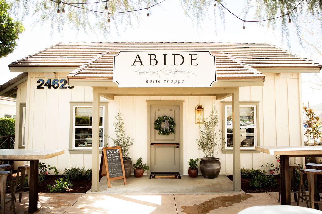 She feels that Abide has been built by God's vision and knows that apart from Christ, none of this could have happened. Her prayer is to be a blessing to her community of Murrieta through Abide Home Shoppe, and to celebrate all the places that you abide.