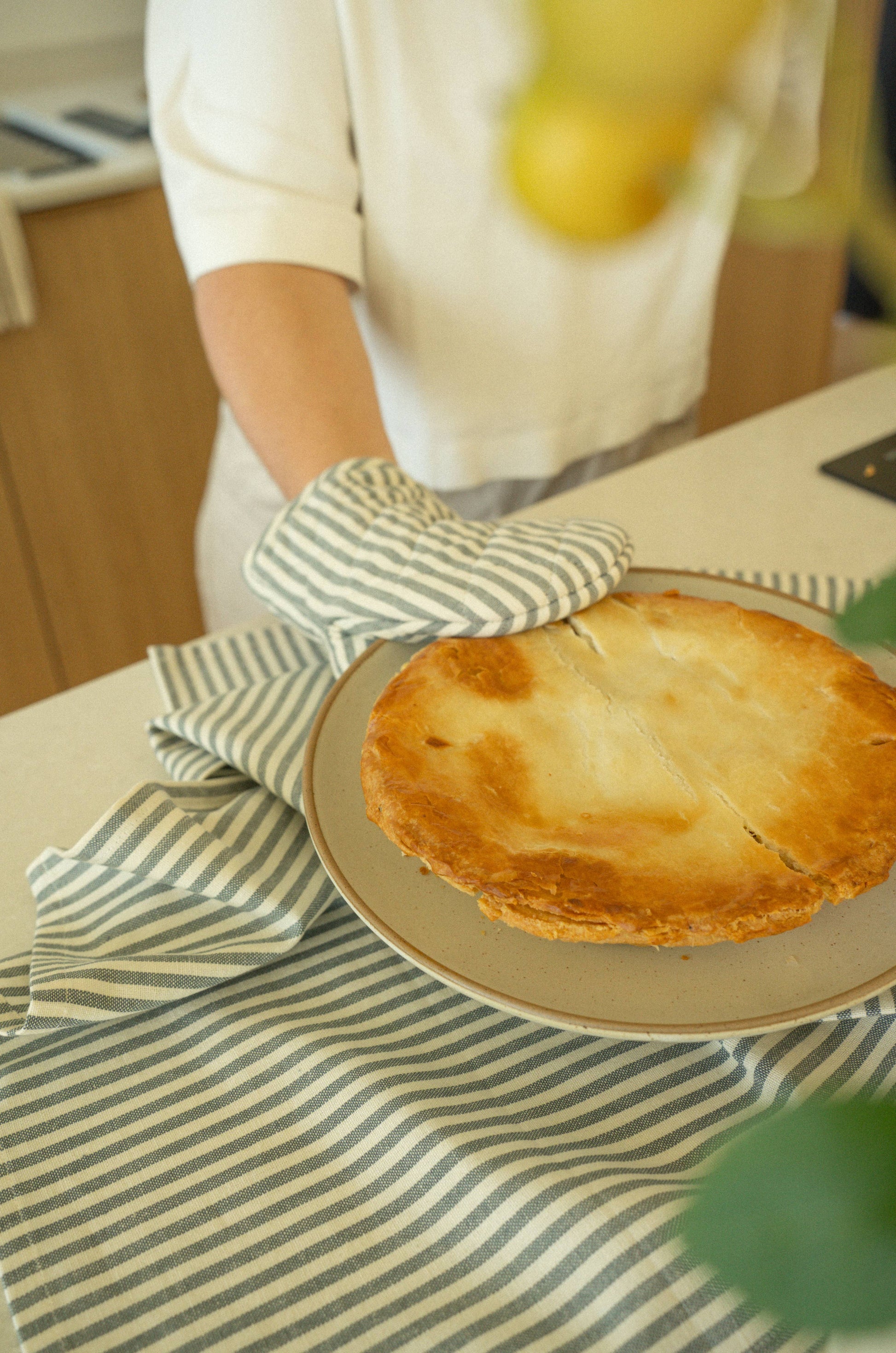 Pair it with the matching Hampton Stripe Tea Towels. Hang it on a hook beside your stove, or style it on open shelving to add a dash functional style