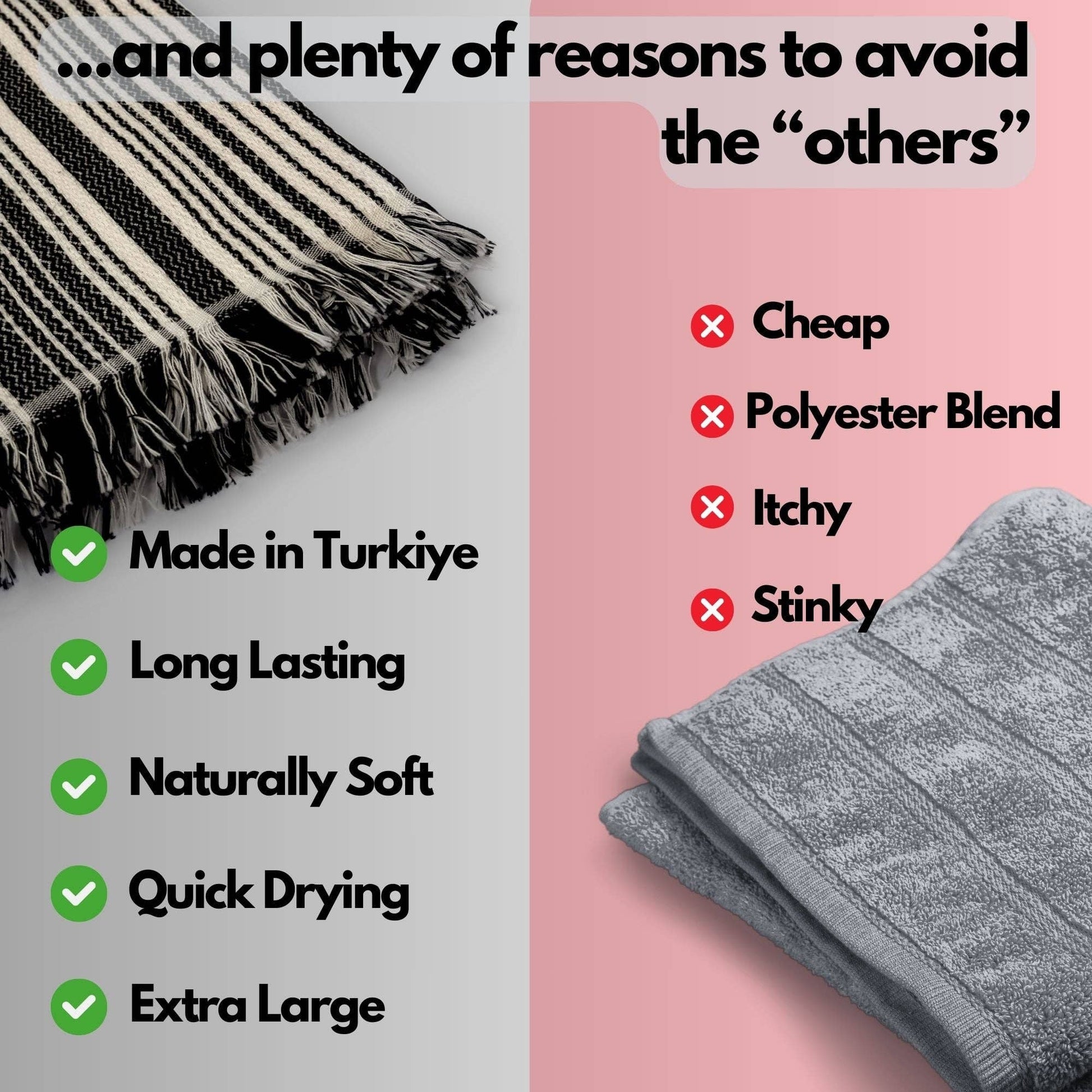 Oversized Ultra-lightweight towel 35” x 67” (90 x 170cm) Made of 100% Turkish cotton Water absorbent